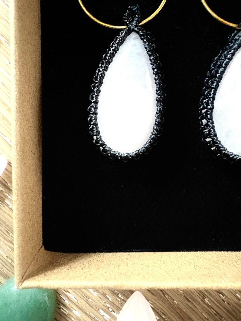 Orné de cabochons de quartz rose, ces boucles d’oreille soigneusement réalisées à la main, alliant l’art du micro macramé à la beauté naturelle du quartz rose, connue pour rééquilibrer les énergies du corps afin d’apaiser l’esprit et favoriser le bien-être.