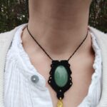 Ornée d’une somptueuse aventurine verte. Ce talisman est soigneusement réalisé à la main, alliant l’art du macramé à la beauté naturelle de l’aventurine verte, connue pour ses vertus apaisantes et équilibrantes.